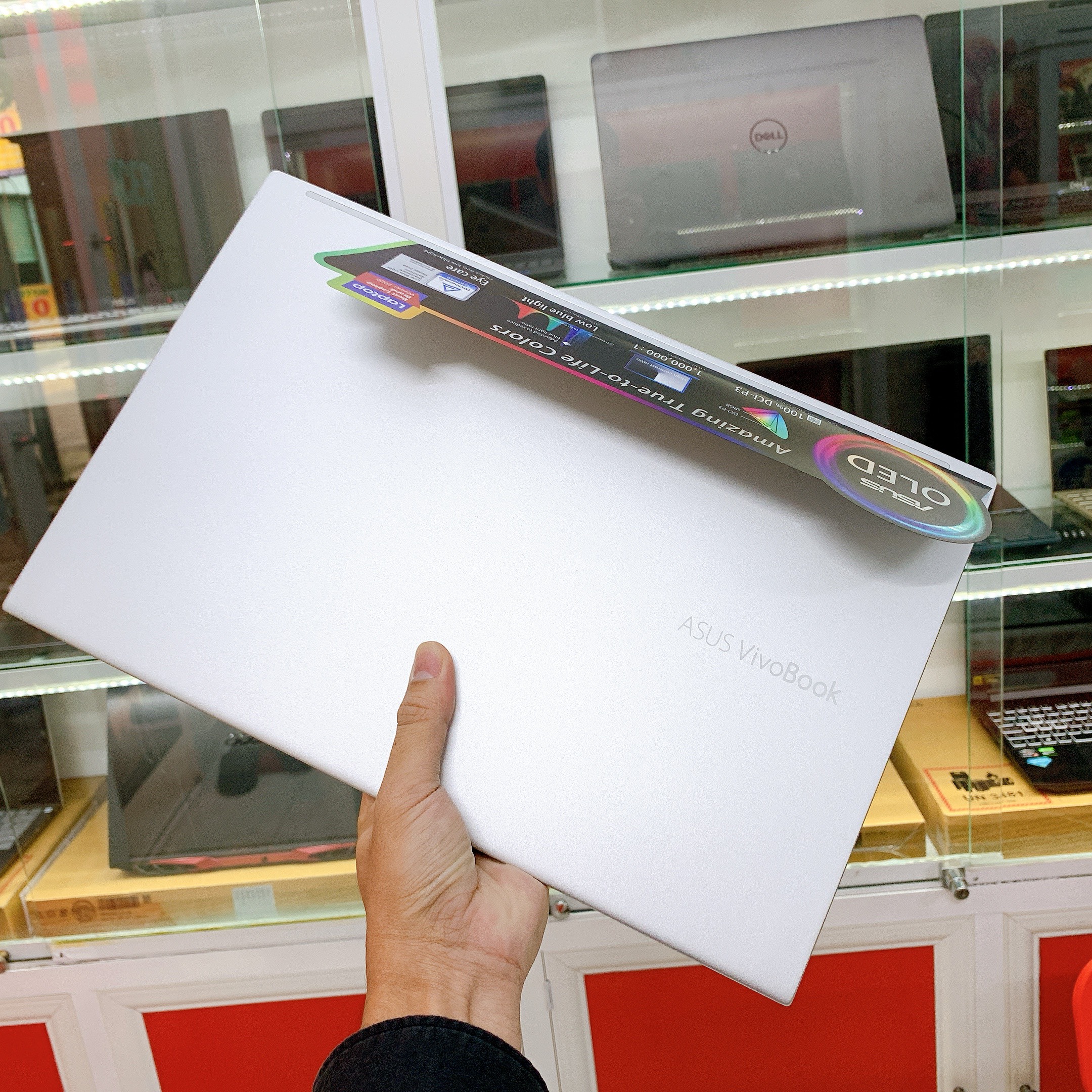 Đặc biệt, chiếc laptop này được trang bị màn hình OLED giúp chất lượng hình ảnh luôn giữ độ sắc nét và màu sắc rực rỡ kể cả khi từ góc nghiêng nhỏ hơn 40 độ, tạo màu đen sâu hơn, đem đến góc nhìn rộng và tiết kiệm hơn các loại màn hình thông thường.